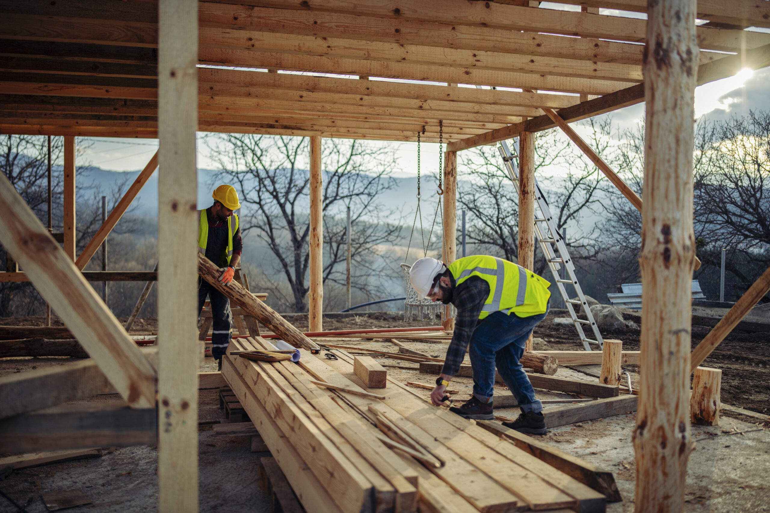 Wood framing project for a small getaway house in the hills